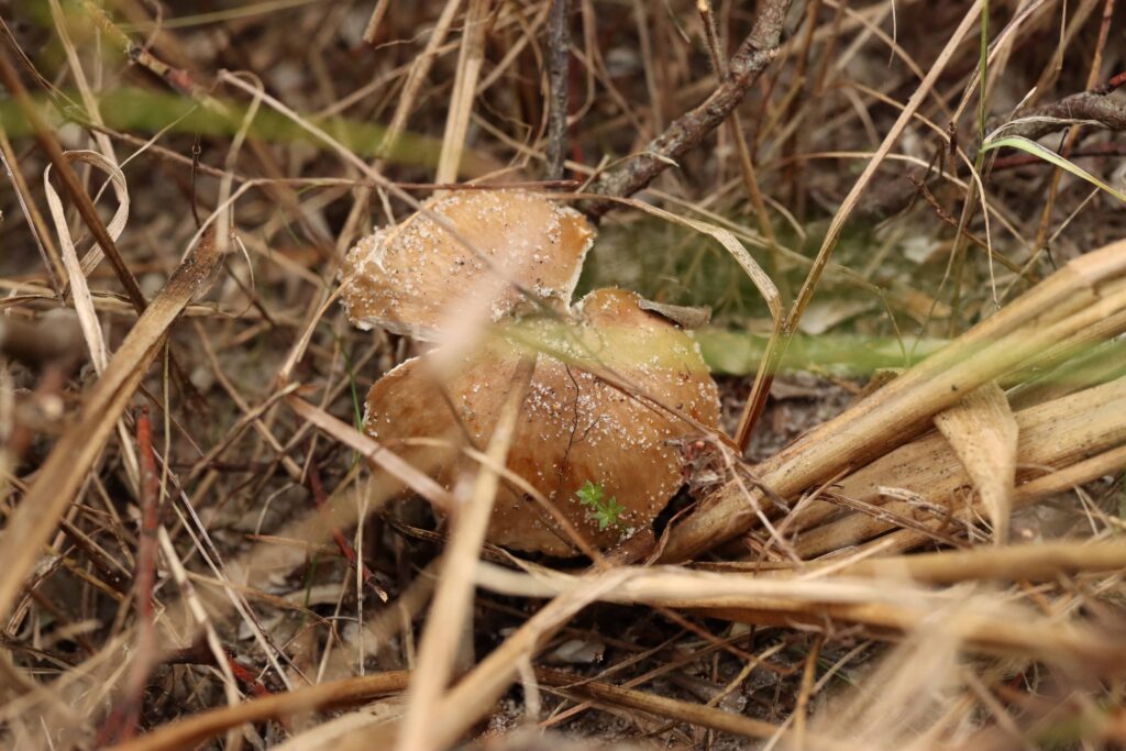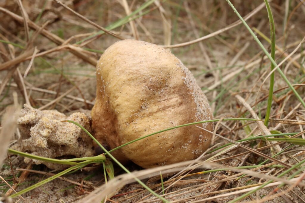 - Flere små brune ældre støvbolde, højst sandsynligt Krystal-støvbolde, men ikke Klit-bovist eller Mark-støvbold.