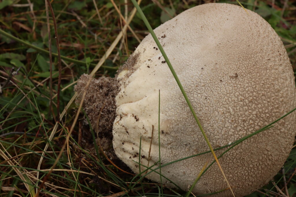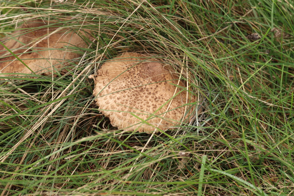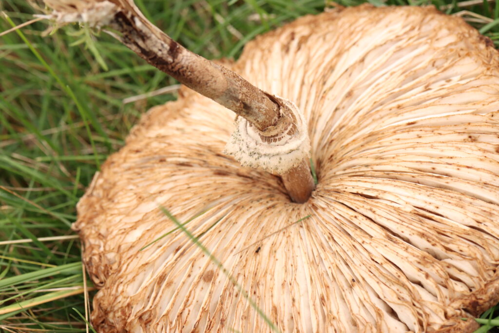 Stor kæmpeparasolhat. Bemærk den specielle dobbeltring. Jeg fandt den helt oppe i marehalmen inden den hvide klit. Foto Fjord